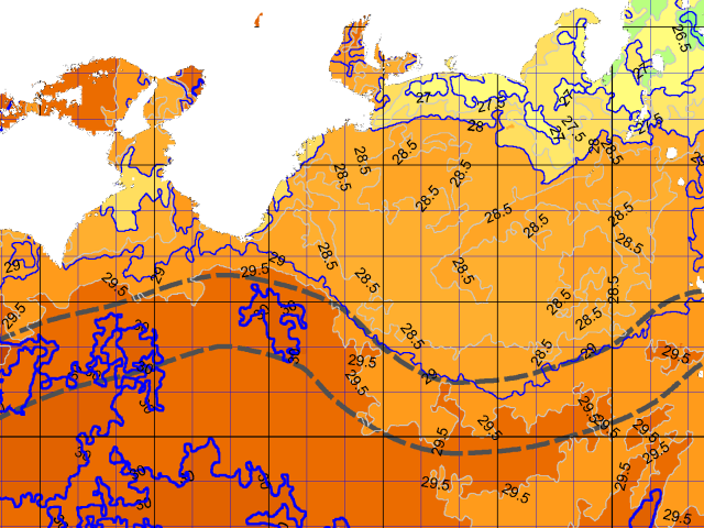 | 水温 | 約27℃(NOAA海面水温分布画像による) |