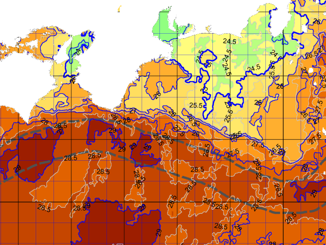 | 水温 | 約26℃ (NOAA海面水温分布画像による) |