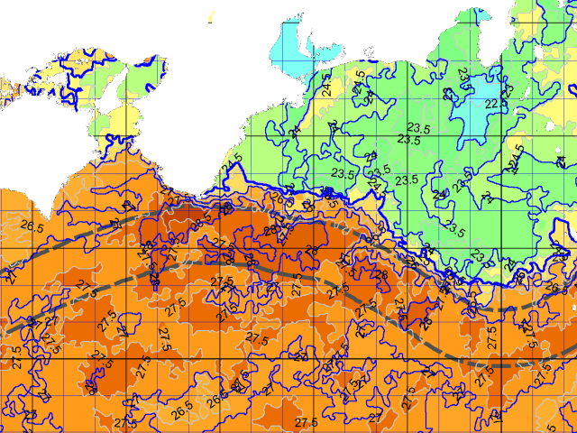 | 水温 | 約23.5℃ (NOAA海面水温分布画像による) |